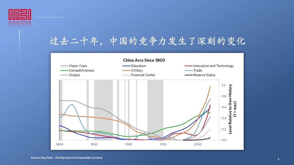 借用Ray Dalio 的一张图,他研究了从1800年到现在,横跨200年,在衡量经济竞争力重要的指标上,中国到底是怎么表现的。我们看到过去的20年,中国在教育、人才、产品力、出口贸易、创新发明等很多的方面,都跑出了一条条几乎类似互联网企业一样快速拉升的曲线。这告诉我们在这一块土地上,过去的20年,中国的竞争力发生了深刻的变化。对于M31资本的投资团队而言,我们有一个深刻的信念:面对不确定的未来,我们有一件事情是确定的。我们认为在未来的20年,有全球影响力是中国优秀领先企业的必要条件。